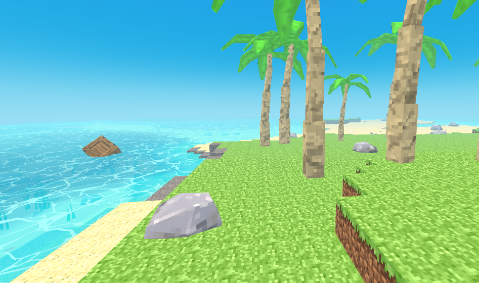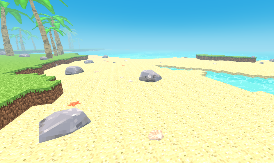 There is also an initial terrain detail system tied to this so details such as trees, rocks, seagrass, shells, etc. are generated through that. Unlike Minecraft the details are models but are tied to the block grid and consume space in it. They will be incorporated into the block based GI and can be created and destroyed similarly to blocks. This will be a big difference from something like Minecraft and provide a lot more richness to the world while still following an art style similar to it.
